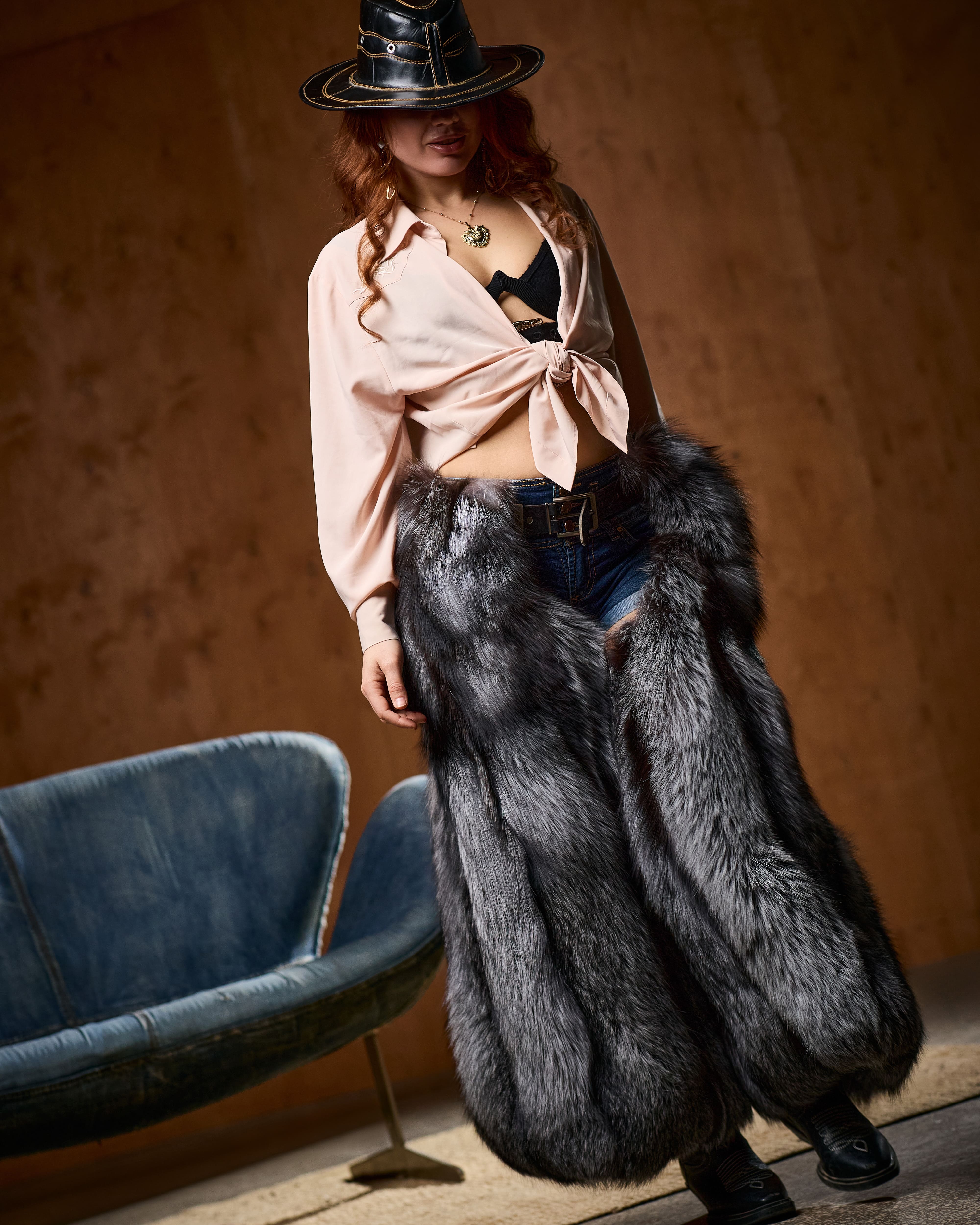 Silver Fox Fur Cowboy Chaps – Luxury Fur Legwear, Belt Attachment, Statement Western Style